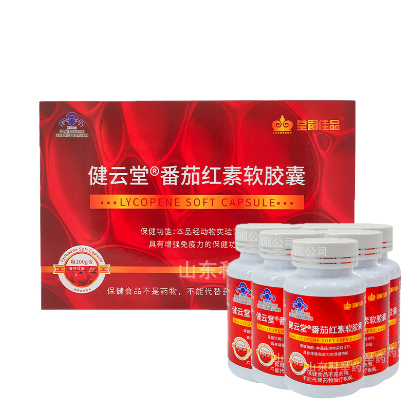 【產品名稱】:健云堂番茄紅素軟膠囊【主要原料】:番茄紅素油樹脂【保健功能】:本品經動物實驗評價,具有增強免疫力的保健功能【規格】:0.5g/?!酒放啤浚夯仕眉哑贰静贿m宜人群】:少年兒童、孕婦、乳母【注意事項】:本品不能代替藥物;適宜人群外的人群不推薦食用本產品【適宜人群】:免疫力低下者【食用方法】:口服【